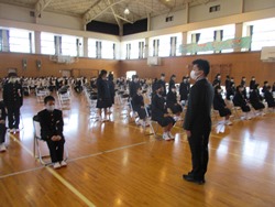 在校生を代表して、生徒会長が「中学校の3年間は、本当にあっという間です。これまでの2年間は、本当に楽しい思い出ばかりですが、後悔したこともたくさんあります。だから、私から一つお願いがあります。それは、いろいろなことに挑戦してほしい、ということです。なんとなく過ごすのではなく、目標を立てて実行することを繰り返し、自分が納得できるような実りのある3年間にして下さい。私達と一緒に、楽しく、充実した学校生活をおくっていきましょう。」と歓迎の言葉を述べました。
