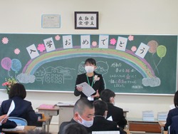143名の新入生を迎え、第74回入学式を挙行いたしました。校長先生から「学校は、学びの場。特に中学校は、義務教育の修了の場であり、自分の進路を決定する大切な学習の場です。皆さんの本当の学習を助けるために、二、三年生の先輩たちも、先生たちも、御家族も、地域の方々も、きっと、いろいろなことを教えてくださいます。しっかり学んでください。」と式辞がありました。