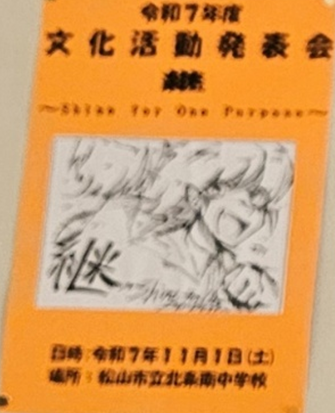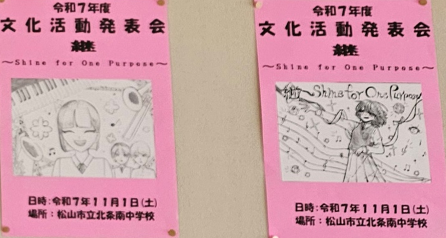 2025年10月28日 16時00分校内に文化活動発表会のポスターを掲示しています。いよいよ今週の土曜日に迫ってきました。残りの練習の時間を大切に過ごしてほしいと思います。